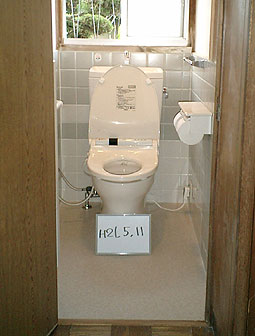 和風両用便器から洋風便器への取替えも1日でこの通り。朝、工事スタートして晩にはトイレをご利用いただけます。