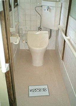 和式便器に簡易型の腰掛け便座を据置いて洋風にしていましたが、掃除もたいへんでした。トイレ内の段差も解消し、小便器と袖壁も撤去しました。